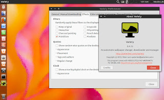 Variety is a wallpaper changer for Ubuntu which is feature-full, yet slim and very easy to use. It can automatically download wallpapers from various online sources, allows rotating them on a regular interval or on demand, and provides easy to use ways to separate the great images from the junk.